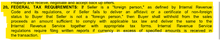 And the TREC contract talks about FIRPTA again in paragraph 20